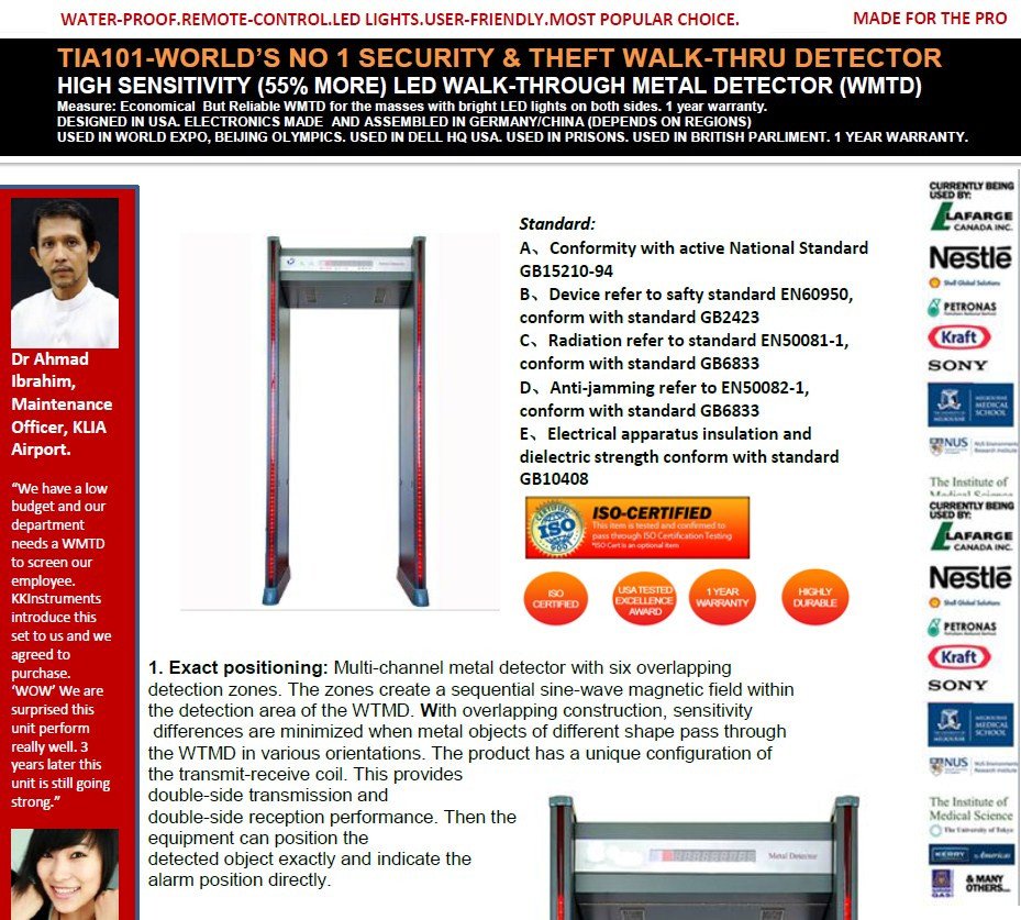 TIA101-WORLD’S NO 1 SECURITY & THEFT WALK-THRU DETECTOR